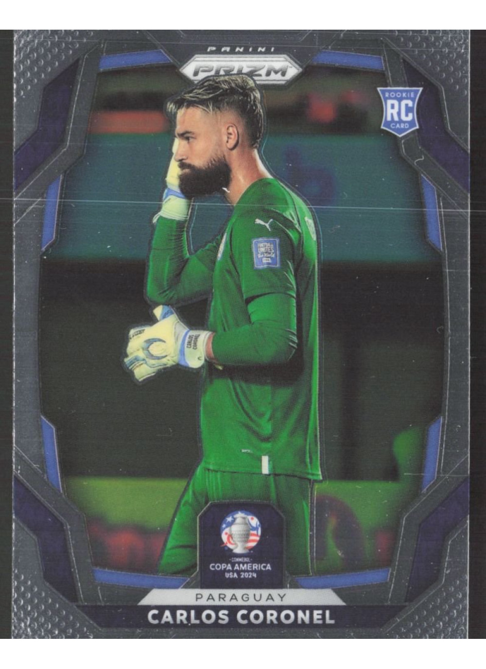 Kartička číslo 77 z edice 2023-24 Panini Prizm Copa America představuje talentovaného brankáře Carlose Coronela. Tato kartička je součástí limitované série, která zachycuje klíčové momenty a hráče z prestižního turnaje Copa America. Coronel, známý svými vynikajícími reflexy a schopností bránit branku, je jedním z nejvýraznějších hráčů této sezóny.