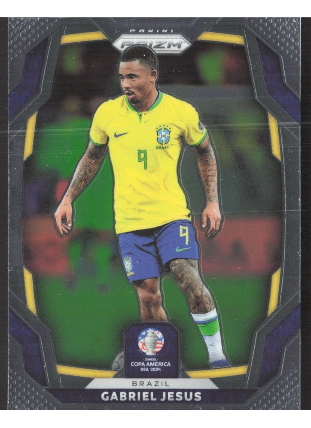 Kartička číslo 37 z edice 2023-24 Panini Prizm Copa America představuje talentovaného hráče Gabriela Jesuse, který se proslavil svými výkony na mezinárodní scéně. Tato kartička je součástí limitované edice, která zachycuje klíčové momenty a hráče z turnaje Copa America.