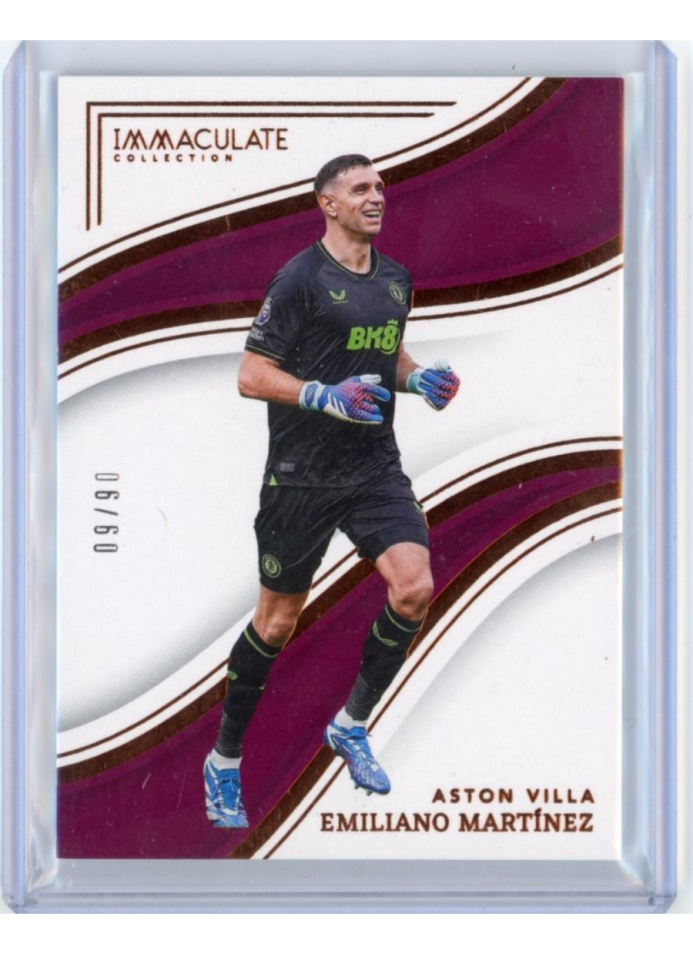 Kartička 2023-24 Panini Immaculate Soccer, číslo #119, je limitovaná edice s počtem pouze 60 kusů. Tato unikátní kartička představuje talentovaného brankáře Emiliana Martineze, který se proslavil svými výkony v Premier League a reprezentaci Argentiny. Je to skvělý kousek pro každého sběratele a fanouška fotbalu.