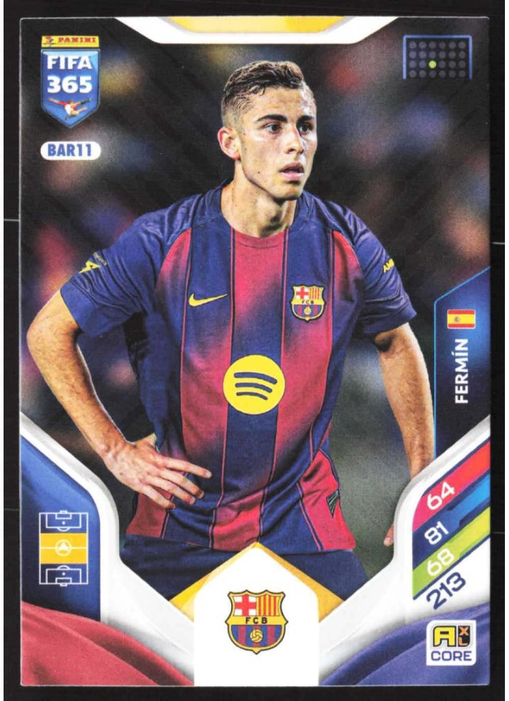 Kartička 2026 Panini Adrenalyn XL FIFA 365, #BAR11, představuje talentovaného hráče Fermína, který se v sezóně 2026 stal jedním z klíčových hráčů svého týmu. Tato kartička je součástí sběratelské série, která zahrnuje nejlepší fotbalové hvězdy a jejich výkony na mezinárodní scéně.