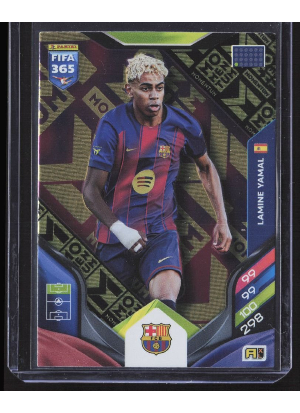 Kartička 2026 Panini Adrenalyn XL FIFA 365, #M5 představuje jednoho z nejvýznamnějších mladých talentů fotbalu, Lamina Yamala. Tento hráč, který se proslavil svými vynikajícími výkony, je součástí prestižní sběratelské edice, která zachycuje klíčové momenty a hráče sezóny 2026.