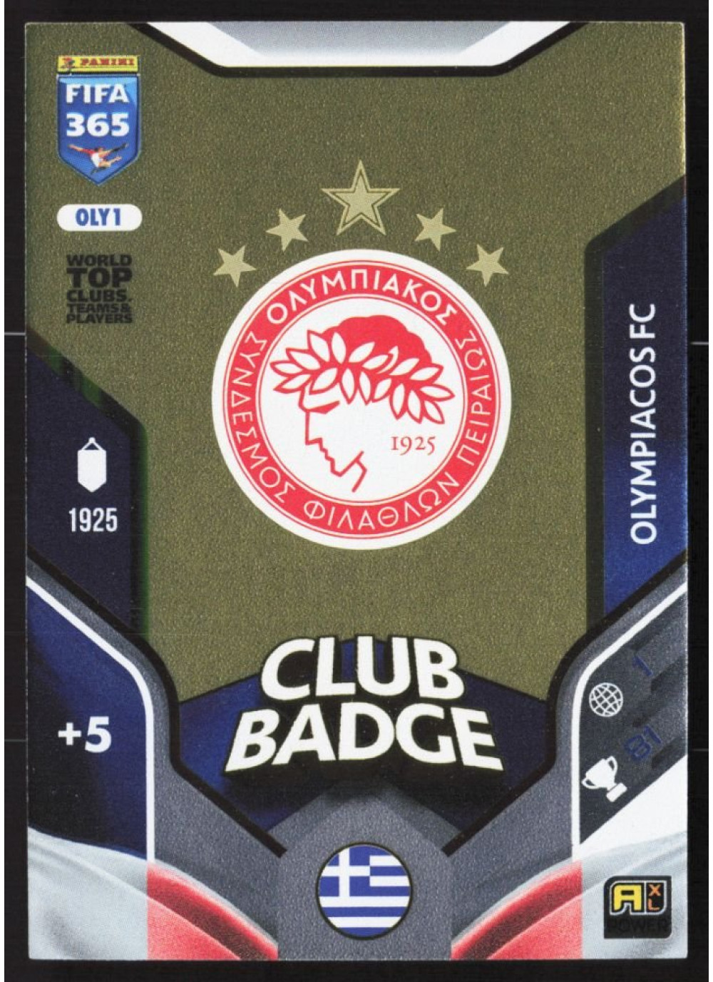 Kartička 2026 Panini Adrenalyn XL FIFA 365, #OLY1, představuje klubový znak, který je nedílnou součástí sběratelské edice. Tato kartička je součástí prestižní série FIFA 365, která zahrnuje nejlepší týmy a hráče z celého světa. Sběratelé a fanoušci fotbalu ocení nejen design, ale i historickou hodnotu této karty.