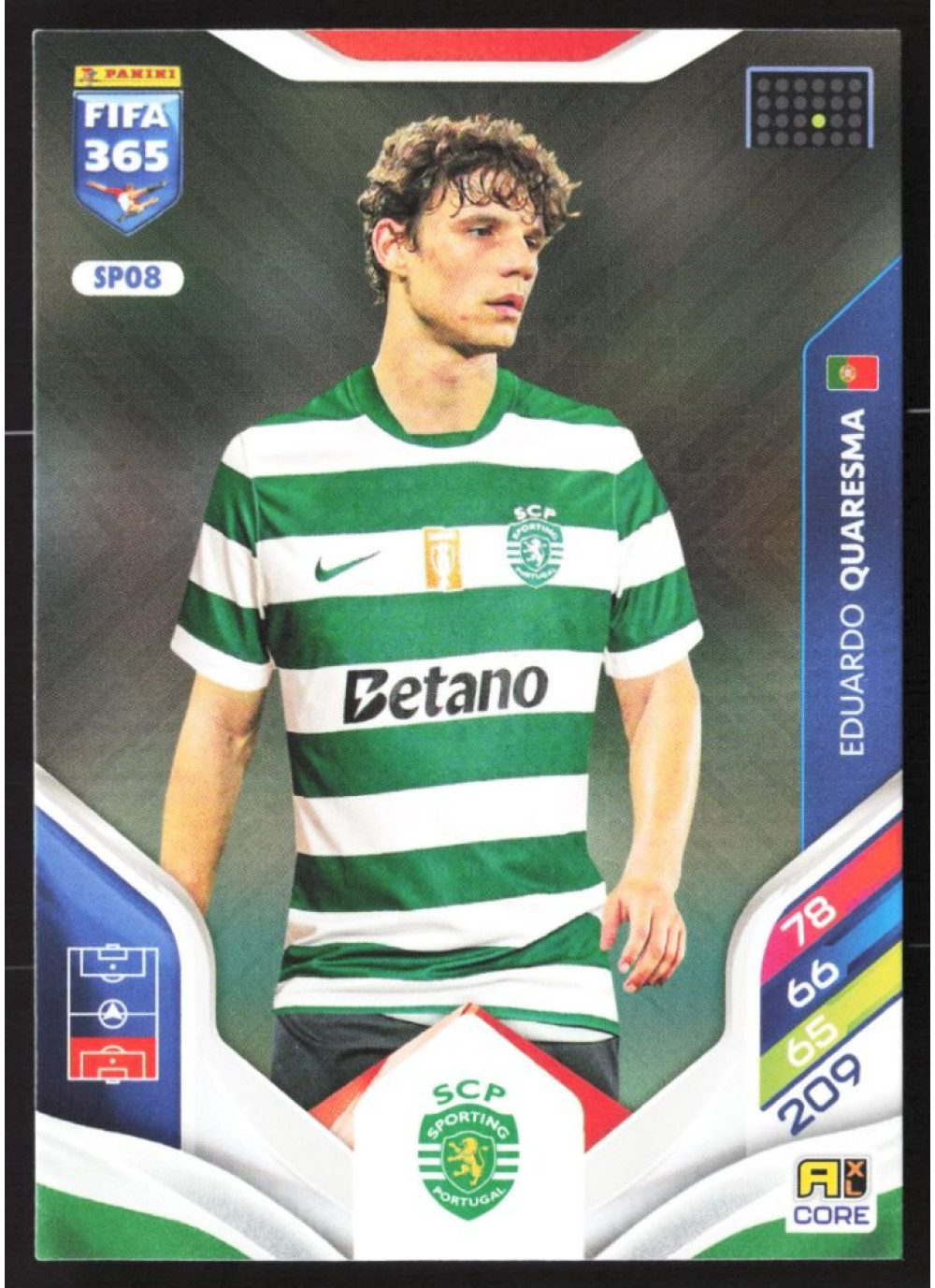 Kartička 2026 Panini Adrenalyn XL FIFA 365, #SPO8, představuje talentovaného hráče Eduarda Quaresmy. Tento sběratelský kousek je součástí populární série, která zachycuje nejlepší momenty a hráče fotbalového světa. Eduard Quaresma, známý svými vynikajícími dovednostmi a výkony na hřišti, je jedním z nejžádanějších hráčů této edice.