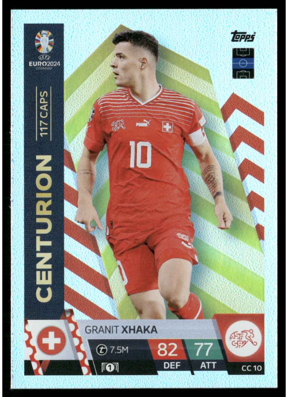 Kartička Topps Match Attax UEFA EURO 2024, #CC10, představuje jednoho z nejvýznamnějších hráčů turnaje, Granita Xhaku. Tento švýcarský záložník je známý svou silnou hrou a schopností ovlivnit zápas. V rámci této edice kartiček můžete sbírat nejen Xhaku, ale i další hvězdy evropského fotbalu, které se zúčastní mistrovství.
