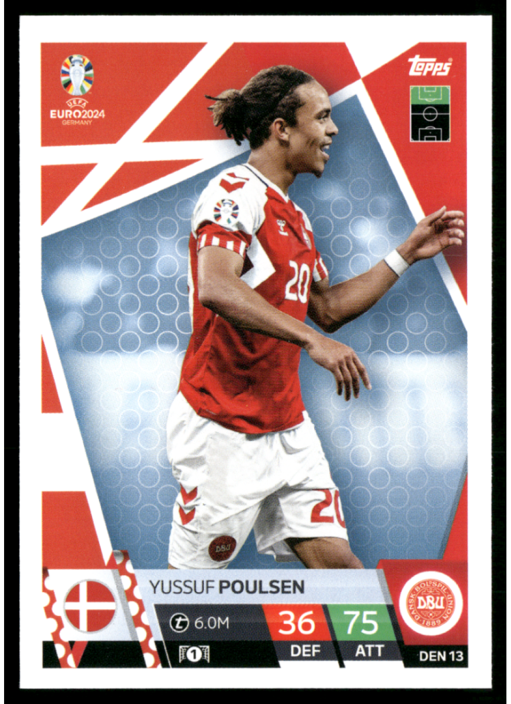 Kartička Topps Match Attax UEFA EURO 2024, #den13, představuje jednoho z nejvýznamnějších hráčů turnaje, Yussufa Poulsena. Tento talentovaný útočník je známý svými vynikajícími výkony na hřišti a jeho kartička je skvělým doplňkem pro každého sběratele. V rámci setu Topps Match Attax UEFA EURO 2024 najdete další karty, které zachycují klíčové momenty a hráče z tohoto prestižního turnaje.