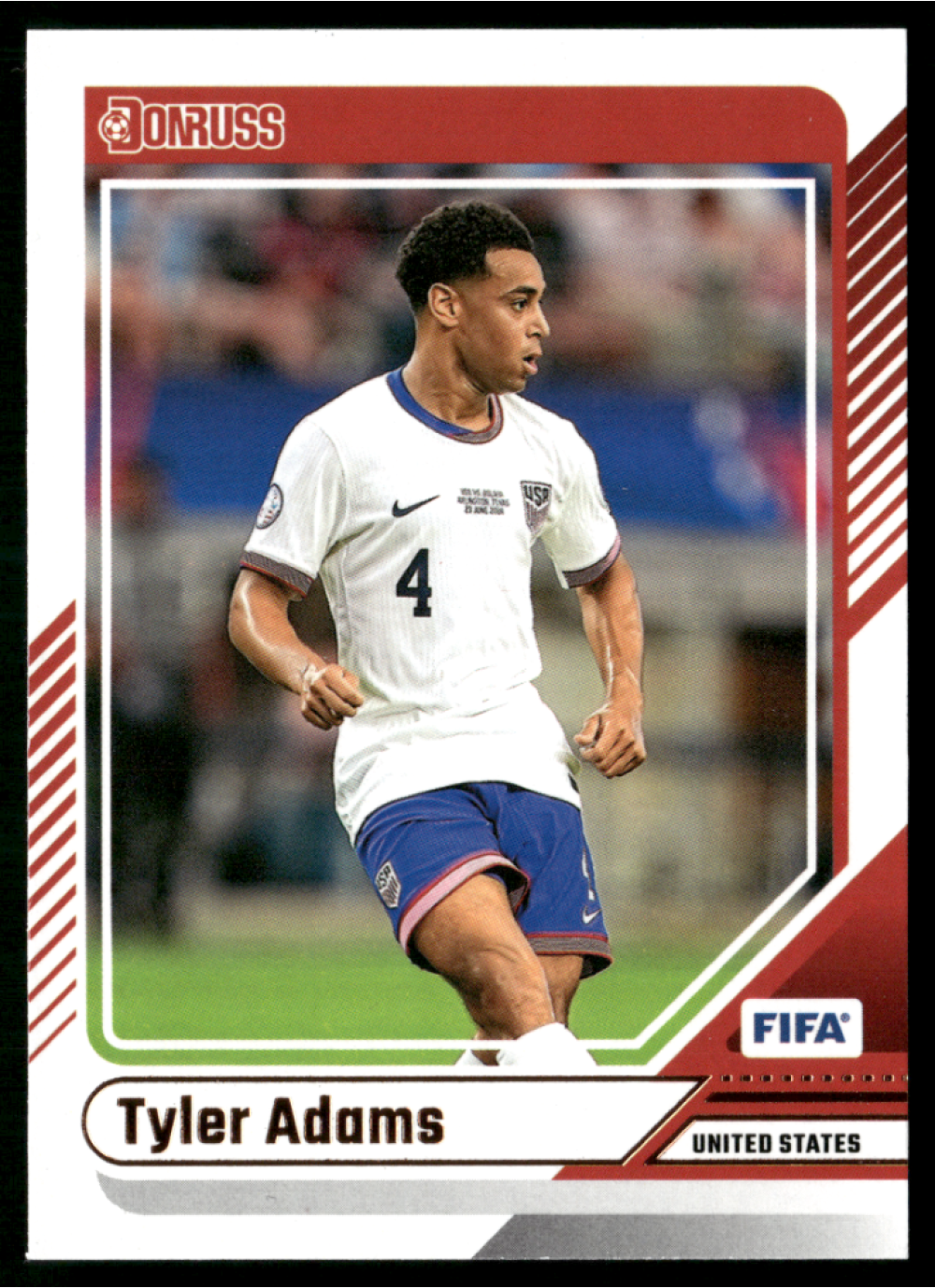 Tagy: Panini, Donruss, fotbal, Tyler Adams, 2024-25, sběratelské kartičky, MLS, reprezentace USA