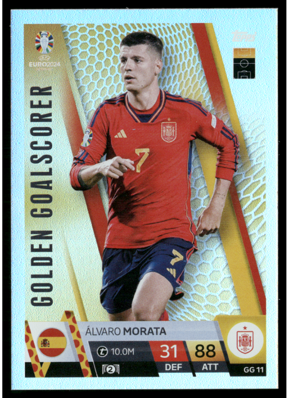 Kartička Topps Match Attax UEFA EURO 2024, #GG11, představuje jednoho z nejvýznamnějších hráčů turnaje, Álvara Moratu. Tento španělský útočník je známý svými vynikajícími dovednostmi a schopností skórovat v klíčových momentech. V rámci setu Topps Match Attax UEFA EURO 2024 můžete najít další skvělé kartičky, které zachycují nejlepší hráče a týmy z tohoto prestižního turnaje.