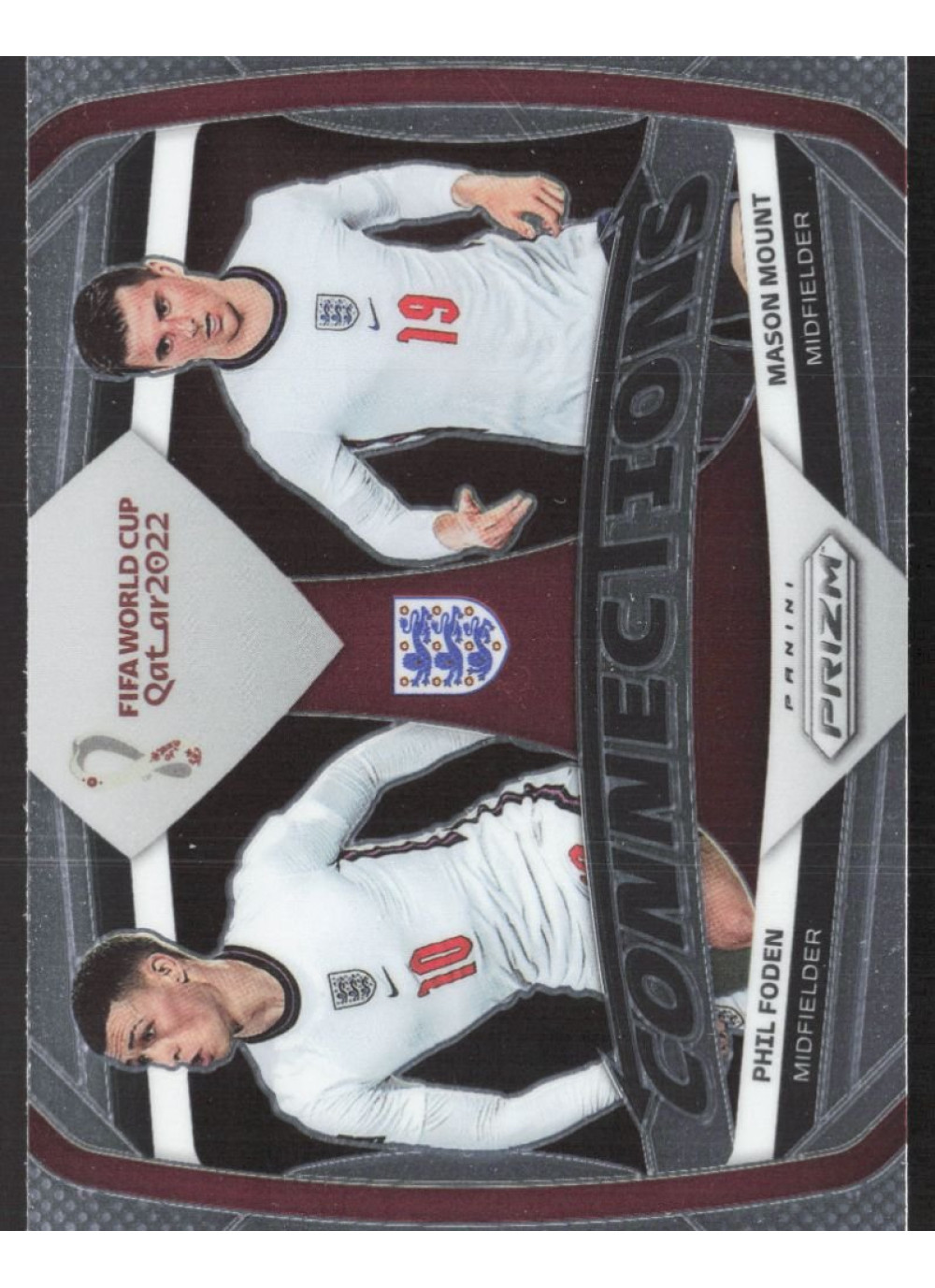 Tato kartička 2022 Panini Prizm FIFA World Cup Qatar, #C20, představuje dva talentované hráče anglického fotbalu - Masona Mounta a Phila Fodena. Oba hráči se proslavili svými výkony na mezinárodní scéně a jsou klíčovými členy anglického národního týmu.
