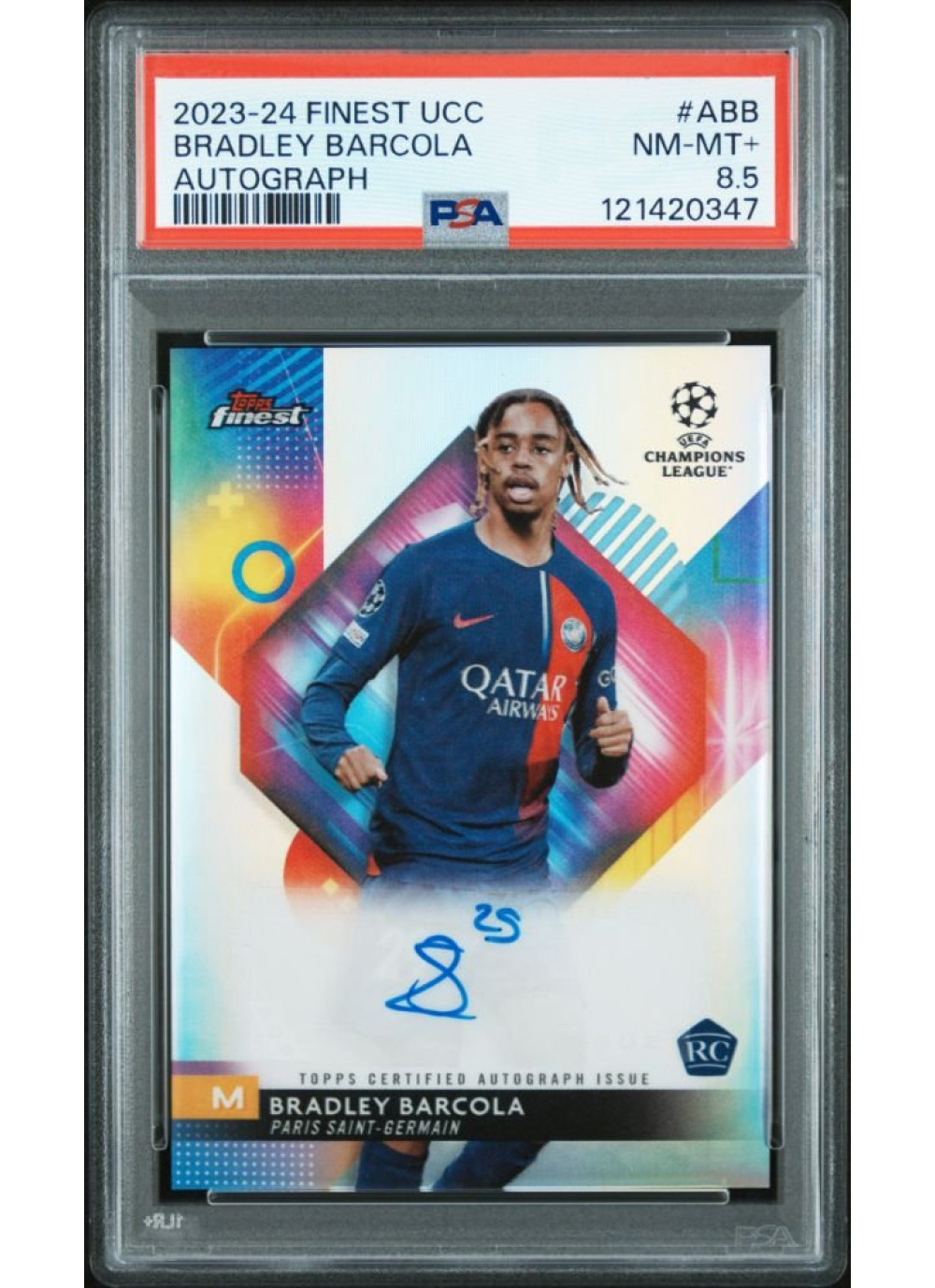 Bradley Barcola, Kartička, Topps Finest UEFA Club Competitions 2023-24, GRADED