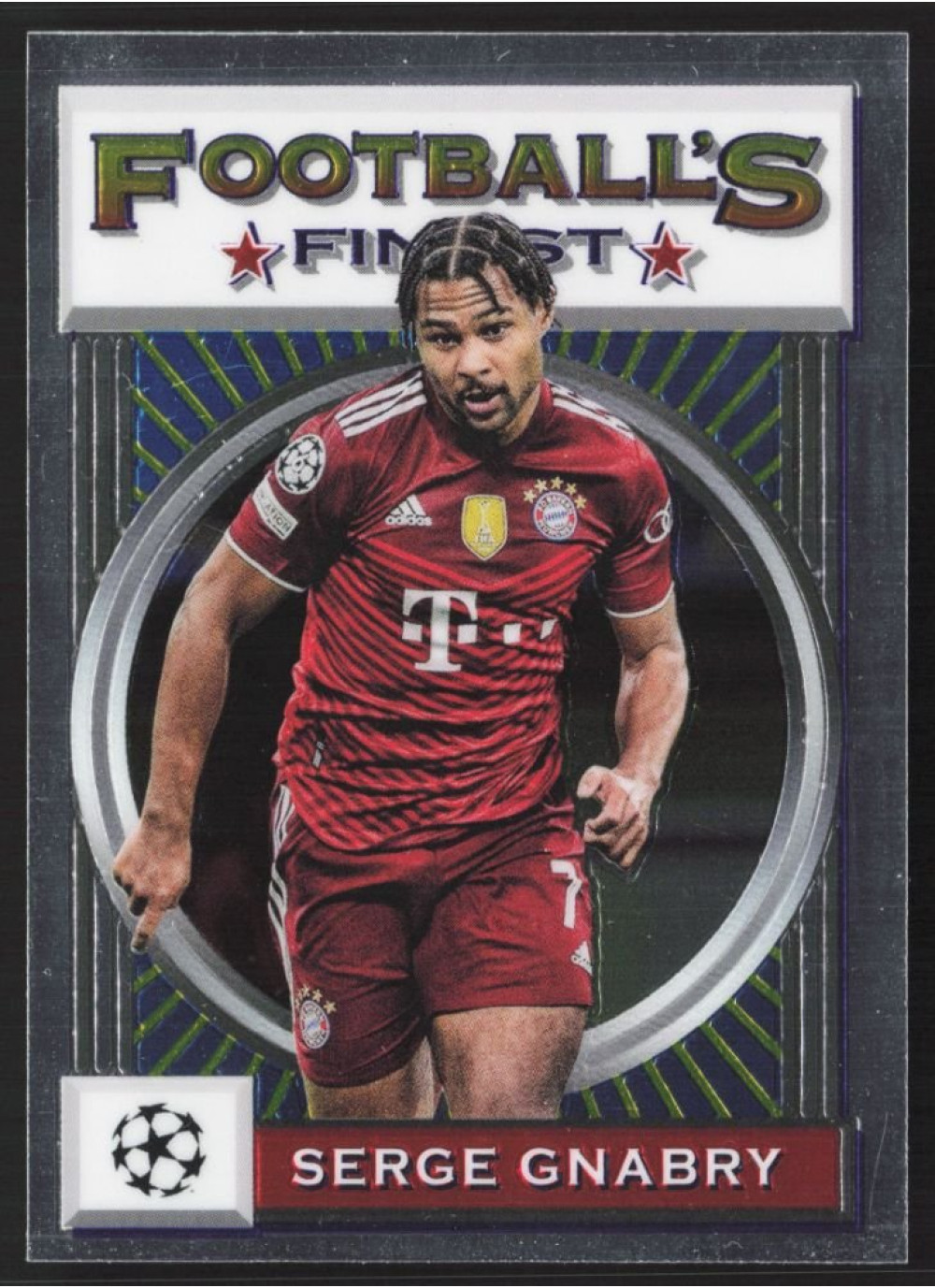 Tato kartička z edice 2021-22 Topps Finest Flashback UEFA Champions League, číslo 62, zachycuje jednoho z nejvýznamnějších hráčů současného fotbalu, Serge Gnabryho. Je to skvělý přírůstek do sbírky každého fanouška fotbalu a sběratele sportovních karet.