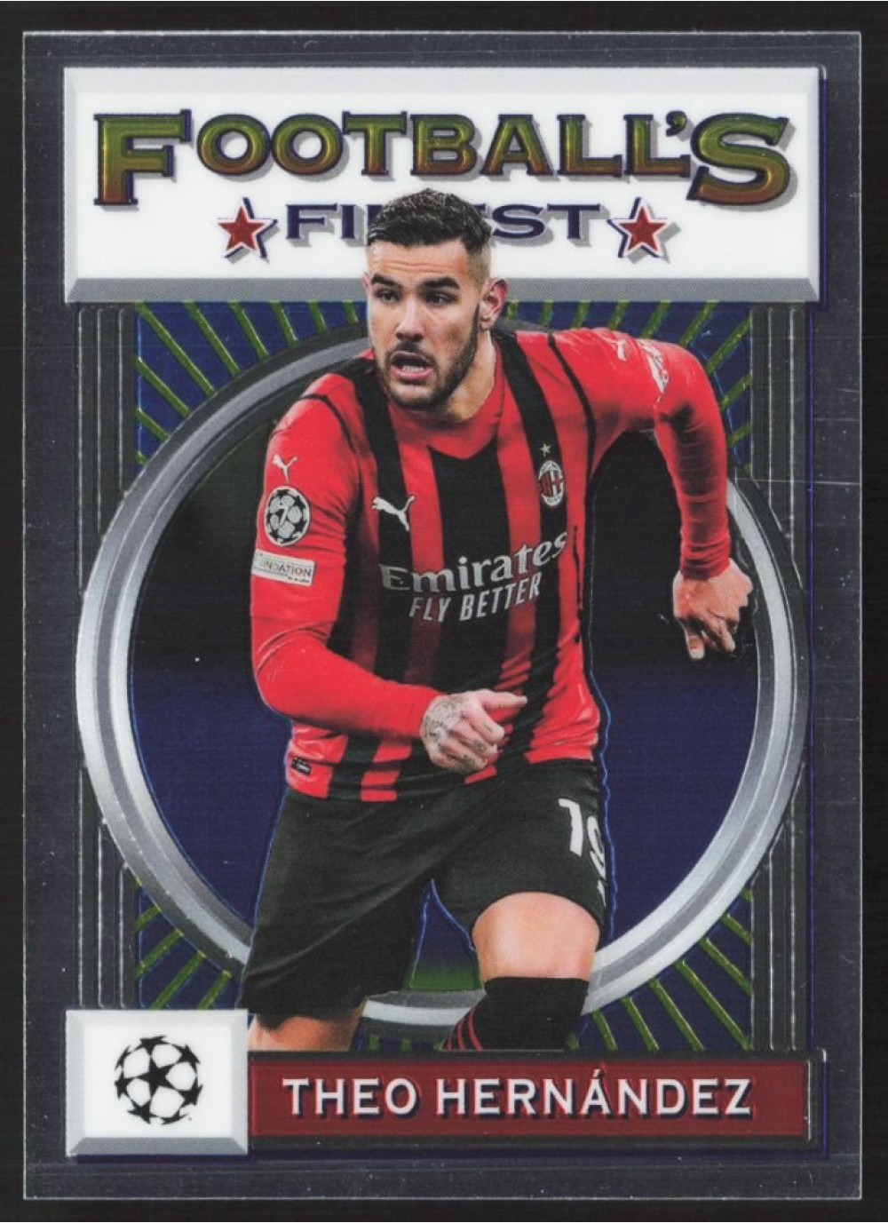 Kartička 2021-22 Topps Finest Flashback UEFA Champions League, #110, představuje jednoho z nejvýznamnějších hráčů současnosti, Theo Hernándeze. Tento talentovaný obránce, který hraje za AC Milán, se proslavil svými vynikajícími výkony na evropské scéně. Kartička je součástí prestižní série Topps Finest, která zachycuje klíčové momenty a hráče z UEFA Champions League.