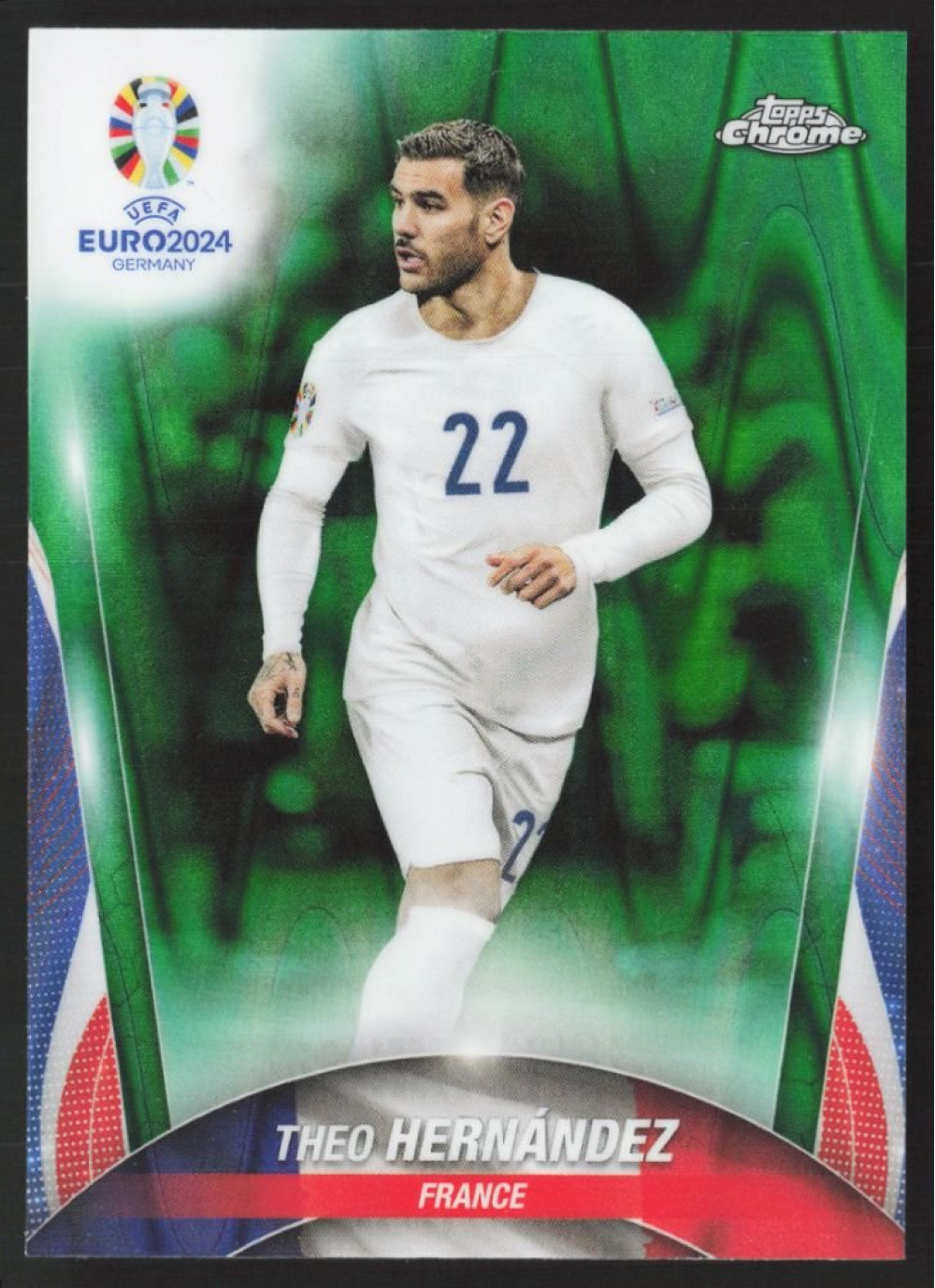 Theo Hernandez, Kartička, Topps Chrome UEFA Euro 2024, Green Ray Wave